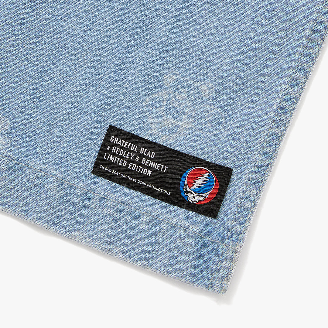 Introducing the first officially licensed, collaborative collection designed by Hedley & Bennett using the iconic imagery from the Grateful Dead with a kitchen twist! Built with the same premium features of our classic Essential apron, with a few special details including a collectible Dedley & Bennett patch, official Grateful Dead tag, and our new rainbow ampersand.