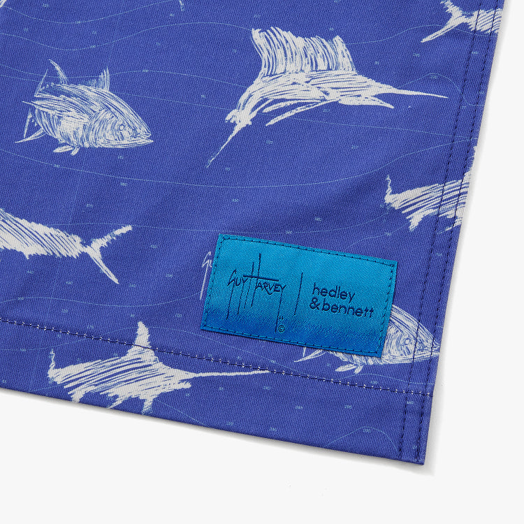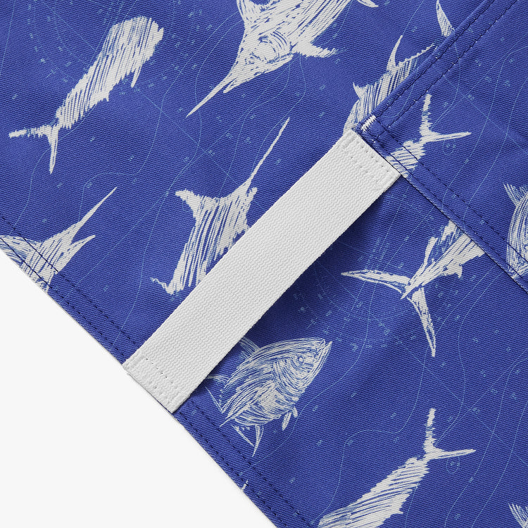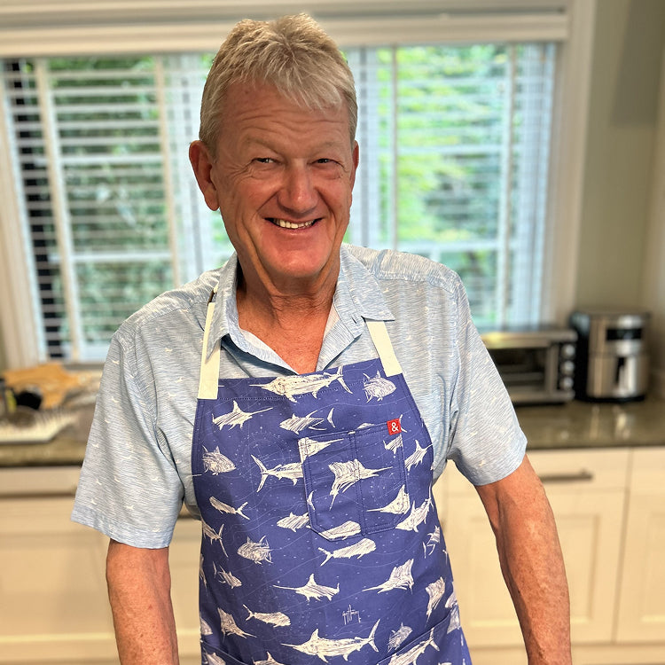 Whether it’s reeling in the perfect catch or plating the perfect dish, this apron is built for the job. Featuring Guy Harvey’s iconic archived scribble fish print, it brings the spirit of the open water straight into the kitchen. Made from durable 100% cotton chino twill with optic white webbing, a pop of tomato red at the ampersand, and a co-branded label, it’s tough enough for dock duty yet refined enough for dinner service.