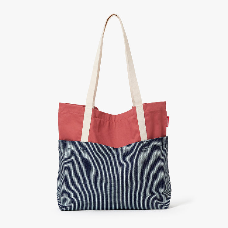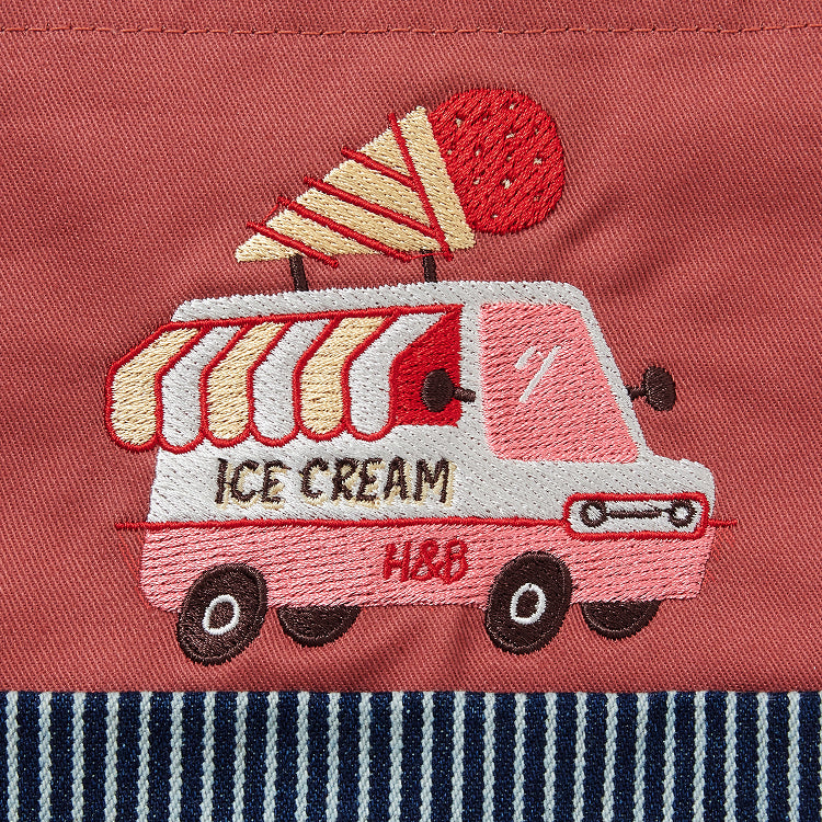 A nostalgic nod to summer days, this À La Carte Collection ice cream tote is crafted from soft, sturdy nautical red twill and finely striped hickory denim. Features cream cotton straps and an embroidered ice cream truck (striped awning and all). The extra-roomy main compartment features a handy interior flap pocket for your phone or wallet, plus a brass D-ring to clip your keys. And with four deep exterior pockets, there’s space for everything from cold brew to sugar cones to a pint of ice cream.