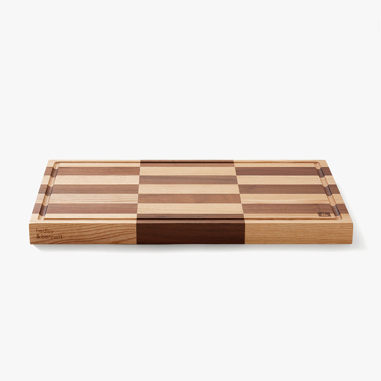 For those who think bold meals deserve bold boards. This geometric walnut and ash pattern turns your cutting board into kitchen art, bold enough to anchor your table display, functional enough for daily chopping. The checkerboard pattern isn't just striking, it's practical too, helping blend all the inevitable knife marks into a beautiful patina (you know, the marks that come with actually using your board unlike your friend with the pristine board who claims to cook every day). And at a “just right” 12x18 inches and 1.25" thick, it has presence without becoming your entire personality.