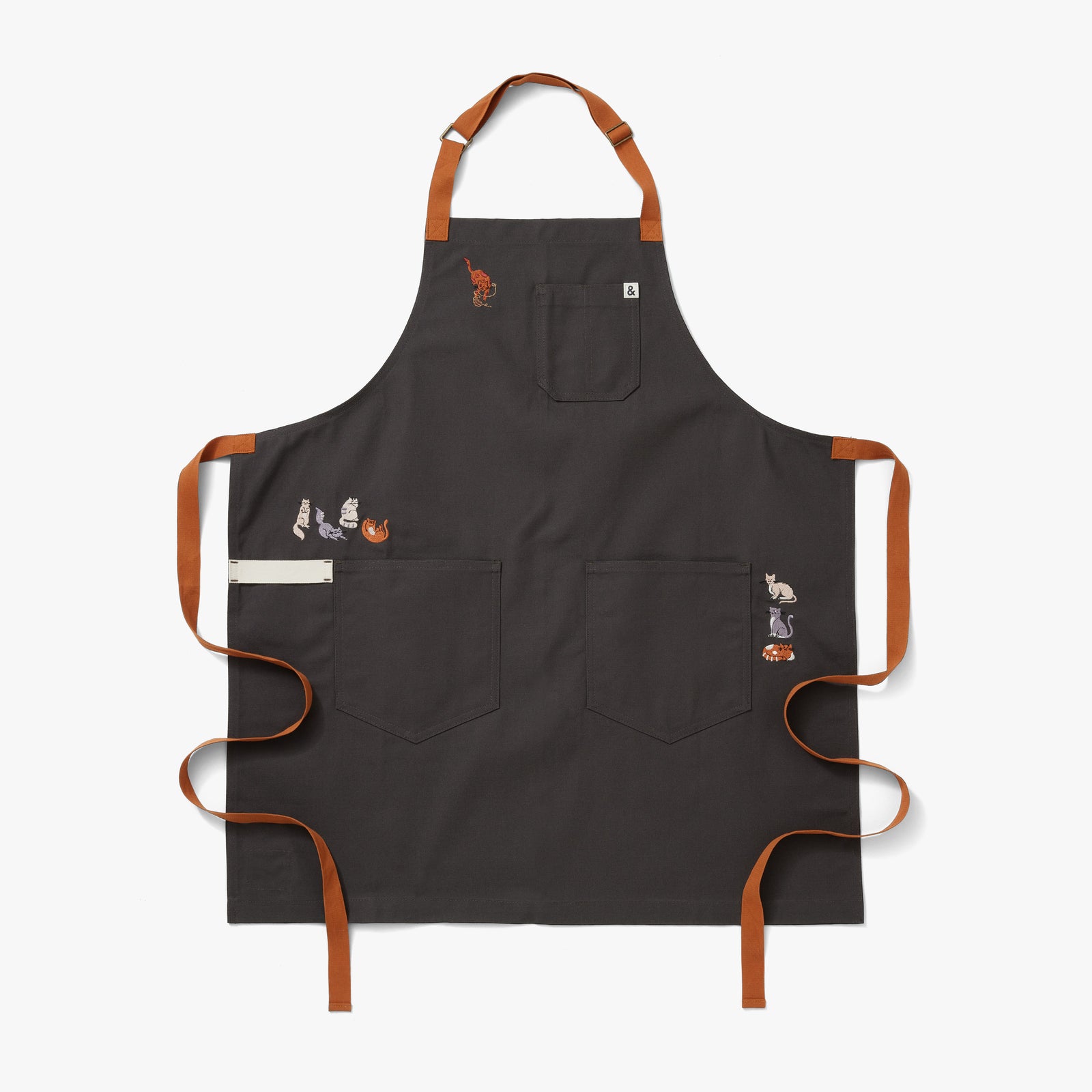 Cat lovers, cook with love (and for a great cause!) This adjustable briquette apron features adorable cat embroidery inspired by the poses owners know and love. The apron supports Best Friends' mission to save the lives of dogs and cats in shelters. The organization has reduced pet shelter deaths from 17 million to around 415,000! Show your furry friend love and fight for others, all while you cook!