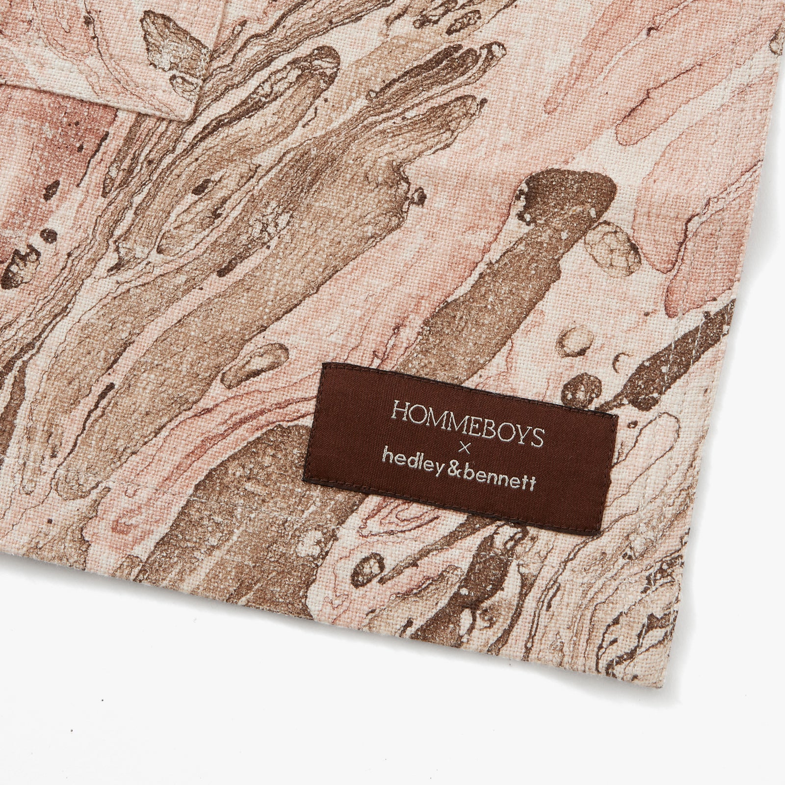 Inspired by the tactile allure of raw materials, the Hommeboys x H&B Red Marbled Smock seamlessly merges Hommeboys' distinctive design aesthetic with H&B's iconic Smock silhouette. Each smock is carefully crafted and hand-marbled by an artisan, creating a one-of-a-kind, unique garment. Features a special edition Hommeboys x H&B woven label.