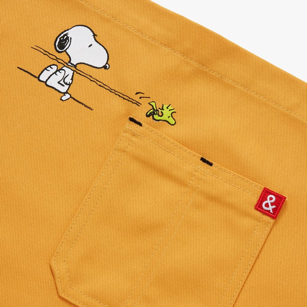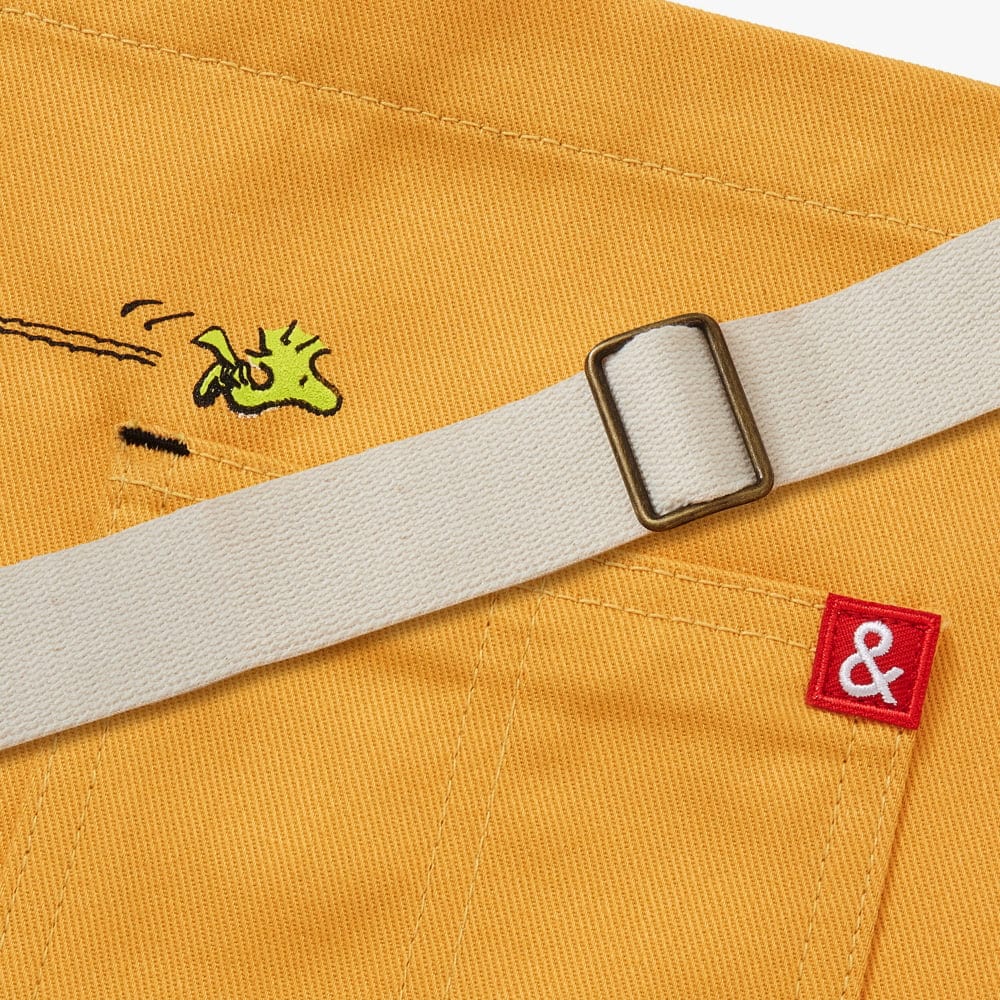 Meet Snoopy & Woodstock. BFF's. Co-pilots. Root beer drinking buddies. Woodstock’s fluttering doesn’t get him very far, but lucky for him he always lands on Snoopy’s doghouse! Woodstock is never far from Snoopy’s side and they wouldn’t have it any other way. This apron is a sweet ode to their adoring friendship, and features a vanilla neck strap, black towel loop, and a yellow bull denim apron body.