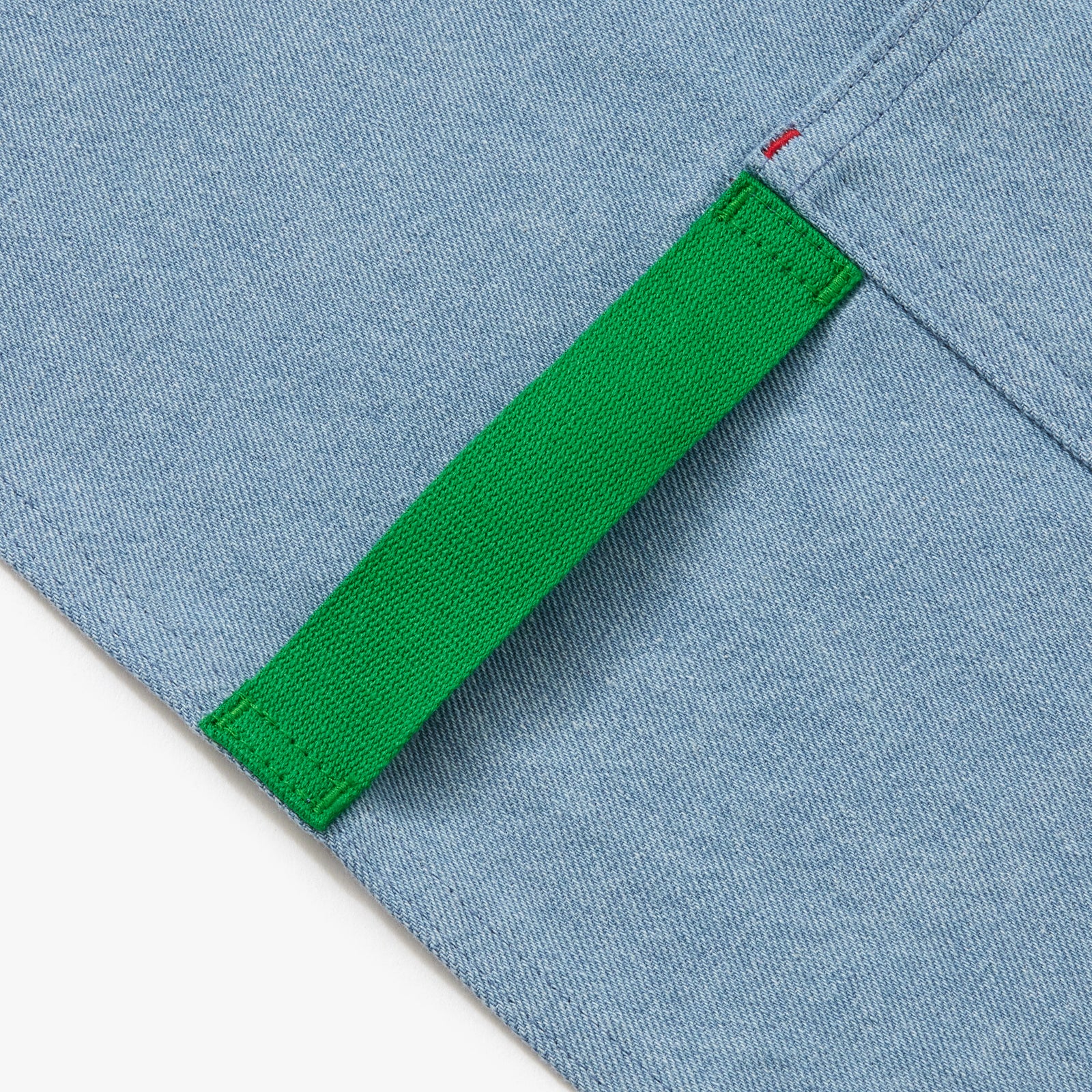 This apron is berry good. An ode to our favorite speckled berry and classic farmers market baskets, our Strawberry Apron features soft, nostalgic 100% cotton mid-washed denim with tomato red webbing, an asparagus towel loop, and a cherry tomato ampersand. Embroidery includes a larger-than-life strawberry in its basket on the chest and a strawberry vine with ripe (and unripe) berries at the hem. Get ready to make some jam (or just look like you could).
