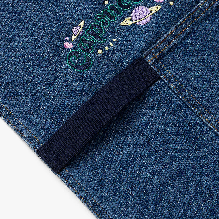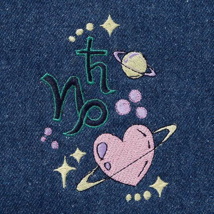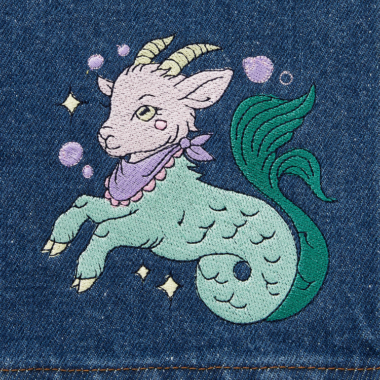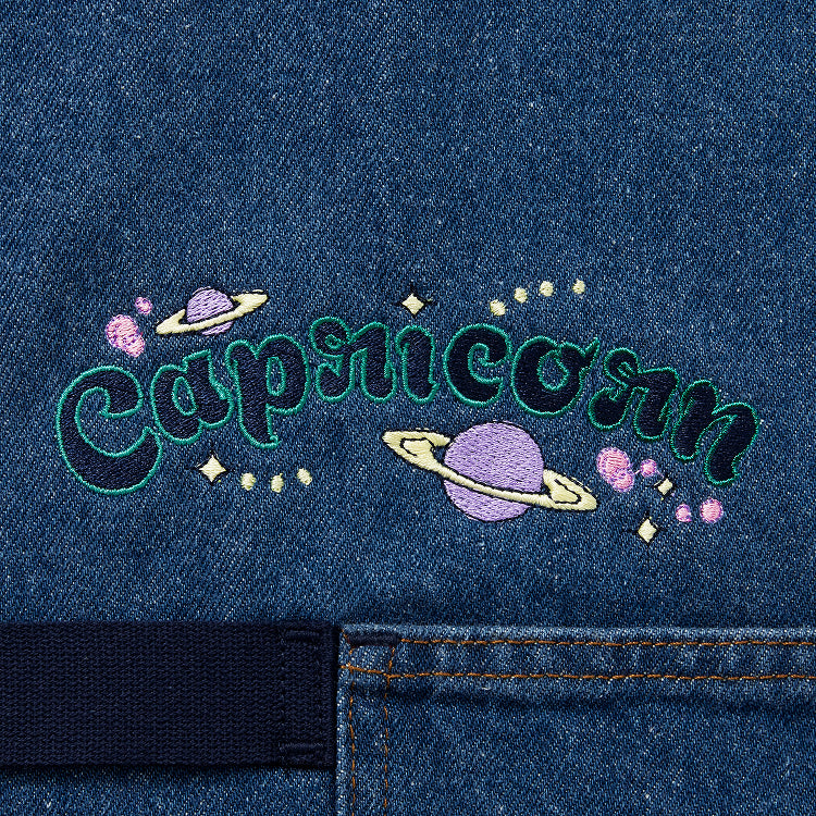 All business with a touch of magic — the Capricorn apron keeps it grounded while reaching for the stars. The chest is circled with Saturn’s rings, while a sea-goat leaps through stardust at the hem. Durable denim construction means it’s tough enough for the grind, but playful details remind you not everything has to be serious (yes, even you, Capricorn). Ambitious, resilient, and secretly a little weird — just the way we like it.